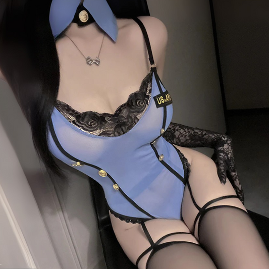 Blue Police Officer Roleplay Lingerie Set – 3-Piece with Stockings