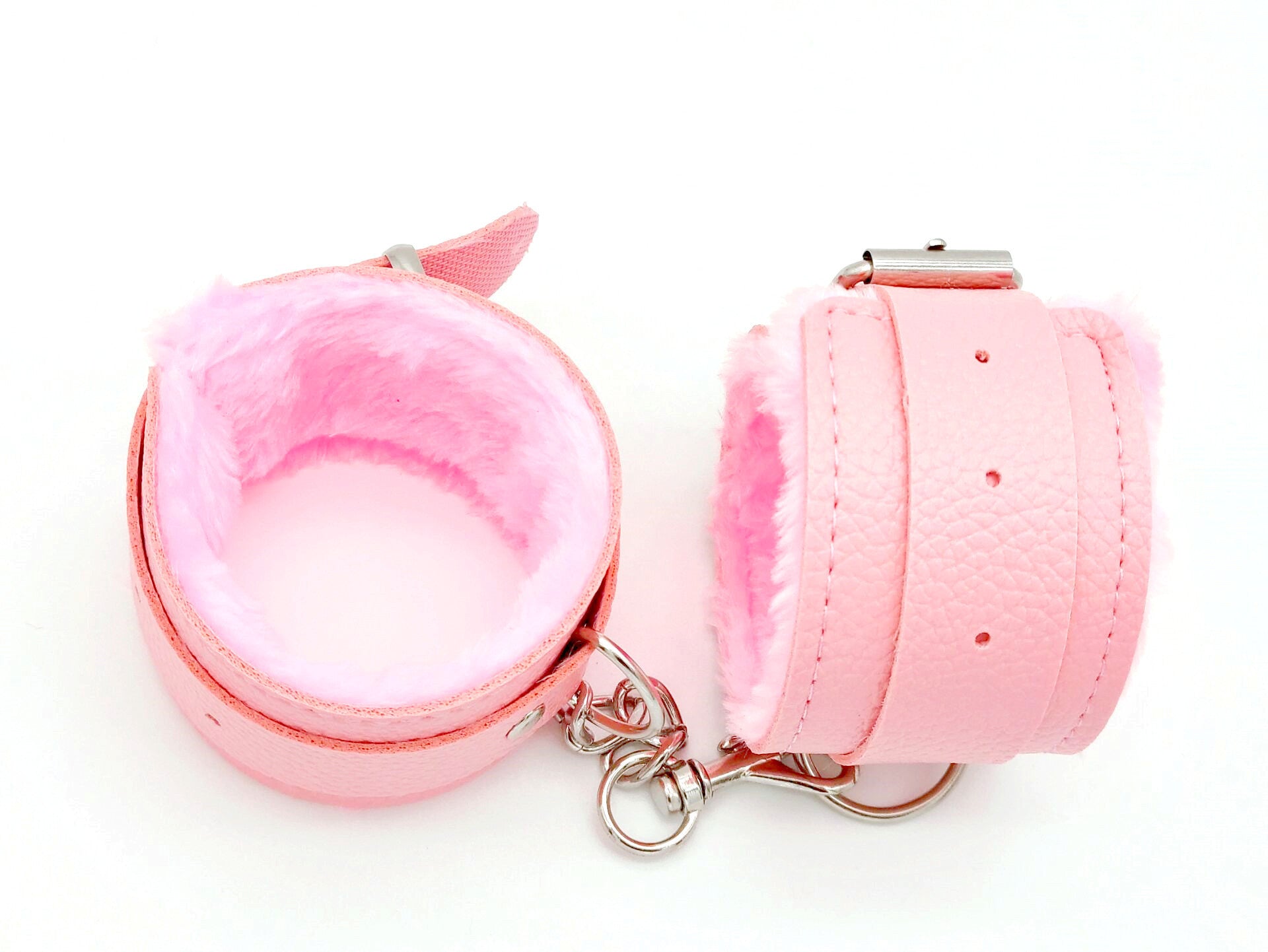 Classic PU Leather Bondage Cuffs – Soft Lined &; Adjustable - Pink